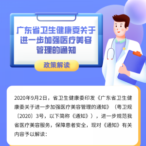 2020年9月2日,省卫生健康委印发《广东省卫生健康委关于进一步加强医疗美容管理的通知》(粤卫规〔2020〕3号,以下简称《通知》),进一步规范我省医疗美容服务,保障患者安全,现对《通知》有关内容予以解读:一、 ...